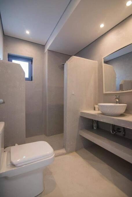 Η βίλα εκτείνεται σε 130 τ.μ. και διαθέτει τρία υπνοδωμάτια, τέσσερα μπάνια, πλήρως εξοπλισμένη κουζίνα, και άνετο σαλόνι με μεγάλες τζαμαρίες που επιτρέπουν στο φως να πλημμυρίζει τον χώρο. Οι επισκέπτες απολαμβάνουν τη δική τους βεράντα με θέα θάλασσα στο διαμέρισμα του 2ου ορόφου, καθώς και την κοινόχρηστη πισίνα με τον κήπο για στιγμές χαλάρωσης κάτω από τον ήλιο.